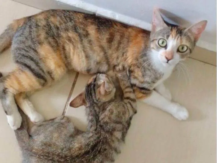 Princesa tem menos de 1 ano, pequenina, castrada e sociável com outros animais. Está junto de 3 filhinhos, muito cuidadosa e amorosa.