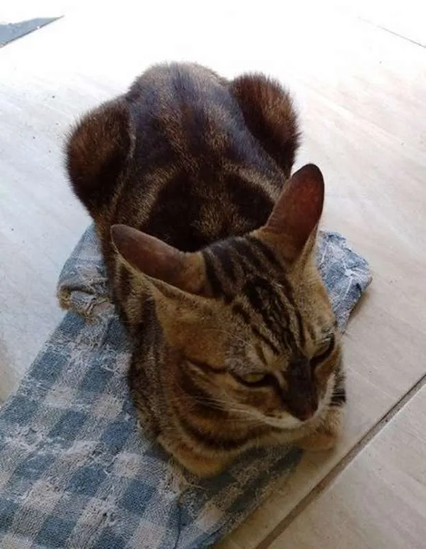 Gatinha de 10 anos será despejada em dezembro na favela do Guarujá, junto de uma mãezinha e seus 2 filhos. Companheira e dócil, é super desenhada no corpo, exótica! Será castrada. Doada para apartamento todo telado em Santos.