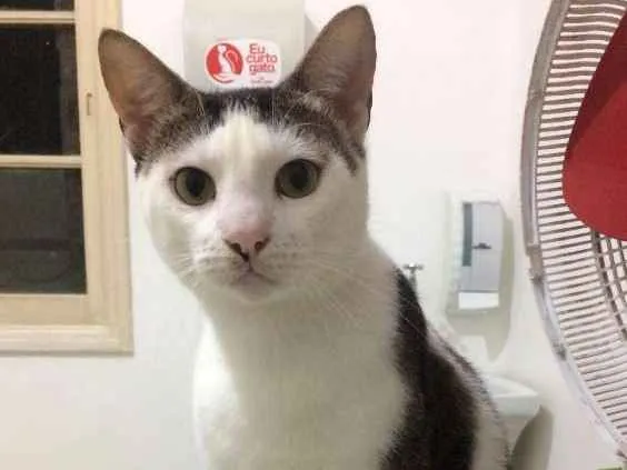 Menino castrado, ,vacinado e extremamente carente. Ama todos os gatos, cães e pessoas, super sociável e conversa conosco o tempo todo, um belo companheiro! rs Foi retirado das palafitas por ter lar, porém desistiram logo depois e agora aguarda numa gaiola de pet. Doado para apartamento telado em SANTOS (peça o formulário de adoção por e-mail).