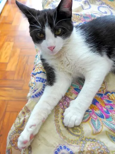 Entre 5 e 6 meses, castrado, vacinado, fiv/felv negativo, dócil, brincalhão e cheio de energia. Somente para apartamento todo telado, em Santos ou São Paulo, e para quem já tem outro gato ou adote uma duplinha pois ele adora companhia felina para brincar - adotargatinhos@gmail.com
