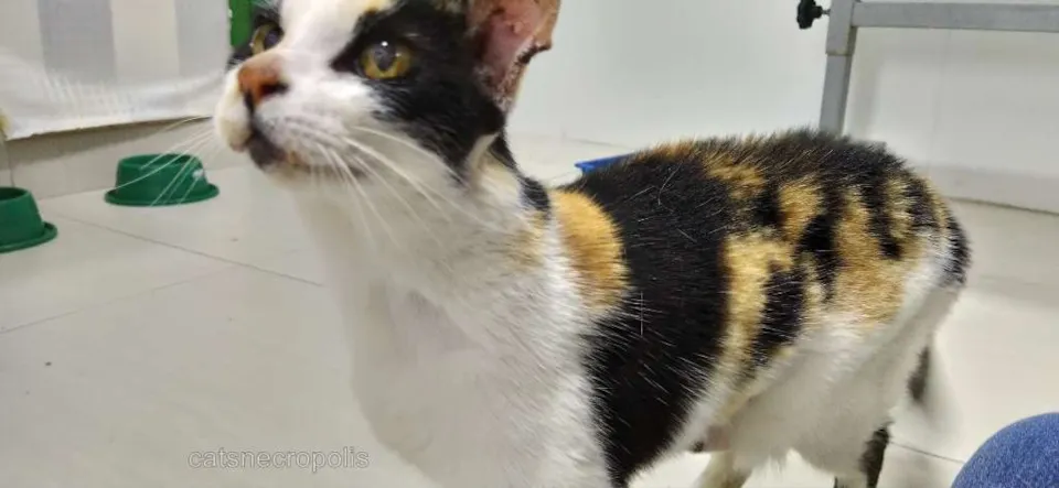Gatinha idosa, passou a vida toda numa colônia. Está internada numa clínica para remoção de um pequeno tumor na orelha. Castrada, fiv/felv negativa, muito meiga e amorosa, essa senhorinha merece uma aposentadoria tranquila, num lar amoroso e seguro (telado!)