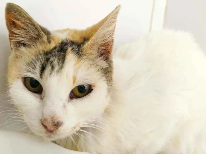 Gatinha castrada, fiv/felv negativa, foi encontrada numa colônia de gatos e está numa clínica se recuperando de inflamação no fígado.