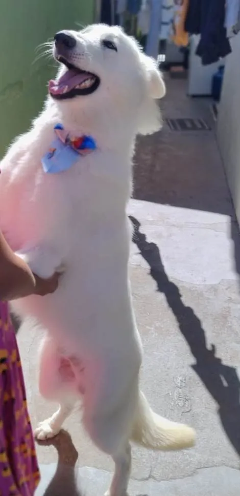 Conheça o Aslan, um lindo cão macho da raça Pastor Alemão Branco, com pelagem branca, que está à procura de um lar cheio de amor! Com apenas 1 ano e 5 meses de idade e porte grande, ele é a companhia perfeita para quem busca um amigo leal e gentil.