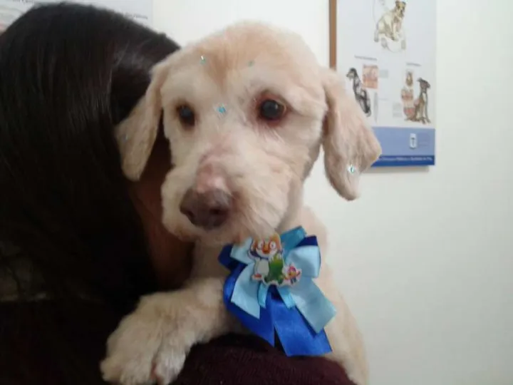 Sou uma poodle, estou tosada, tenho por volta de 04 a 05 anos, peso 07kg, porte pequeno/médio, fui cadastra, vermifugada e vacinada pelo Dr. Carlos e pela Dra. Carol, sou muito carinhosa, adoro um colo e um carinho na barriga, sou muito dócil, me dou bem com pessoas de todas as idades e com outros animais tb. Ahhh sou muito boazinha e não lato.