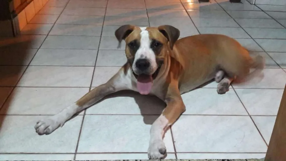 Ele é muito ativo. Precisa de alguém paciente ou que tenha um cão do mesmo porte pra brincar com ele.