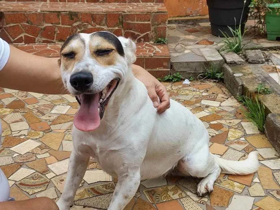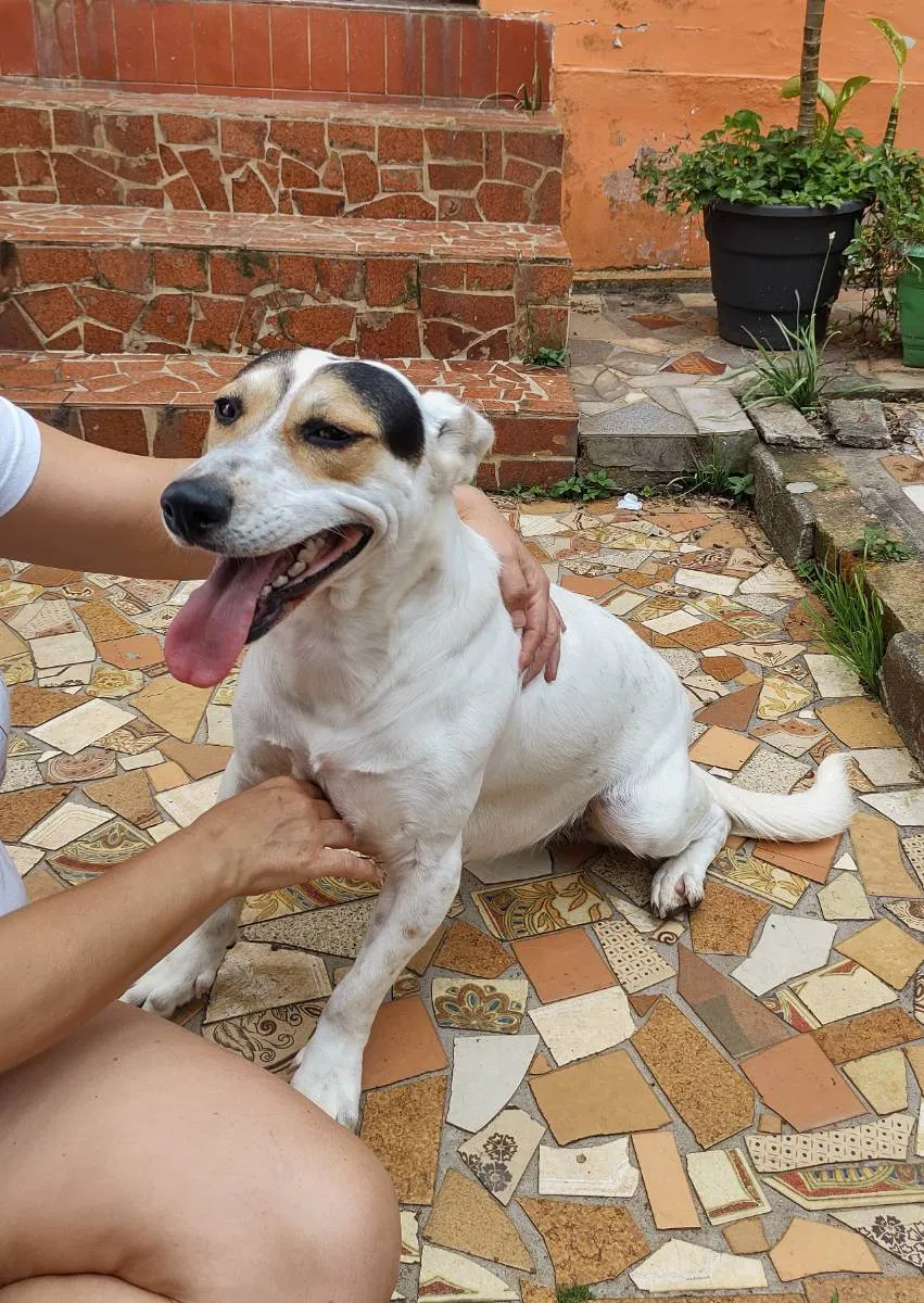 Linda cachorra branca sem raça definida, castrada e vacinada, pra adoção responsável,lares fechados. Cerca de 2 anos, amorosa e mansa. Foi resgatada na rua e reabilitada