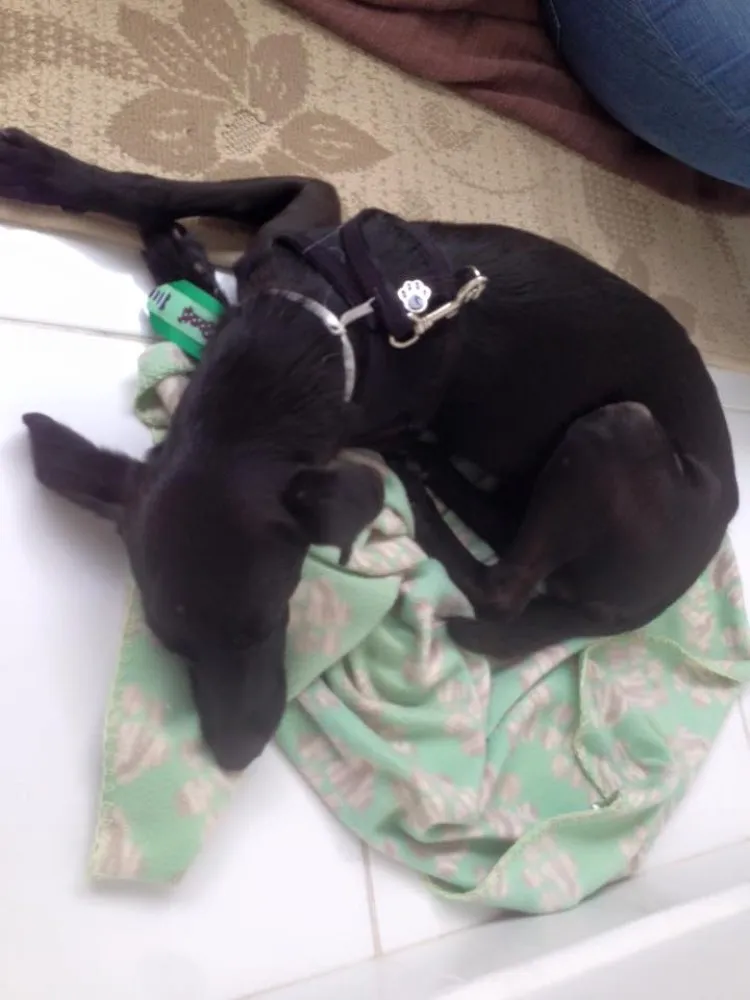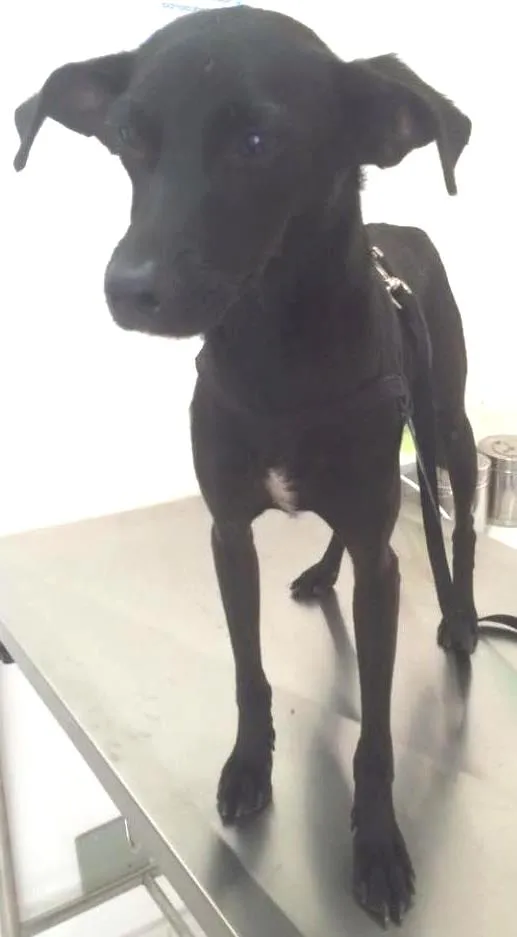 Levei no veterinário, ele tomou um banho e o vermífugo, e vai tomar vitamina por 1 semana para ficar mais fortinho. Por fim, semana que vem vai tomar as vacinas! A veterinária falou que, além de apresentar sinais de maus tratos, provavelmente, ele já teve cinomose, pois tem um olho mais esverdeado e é sensivel a luz.