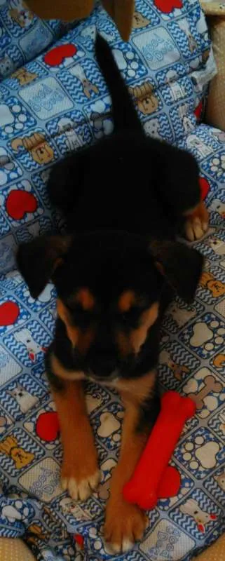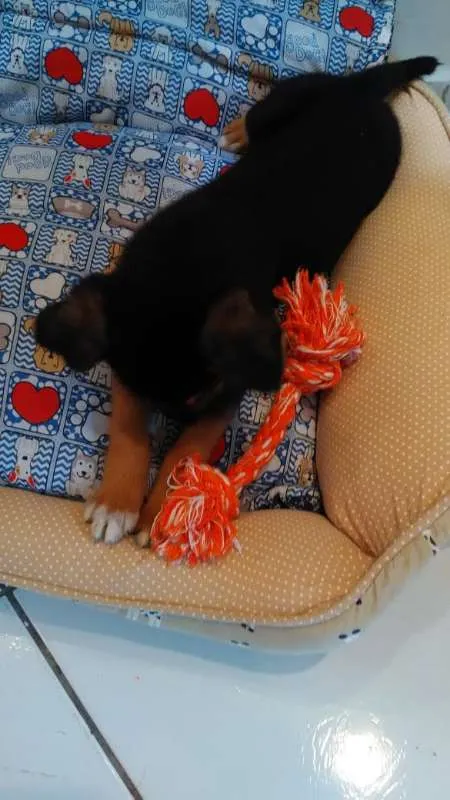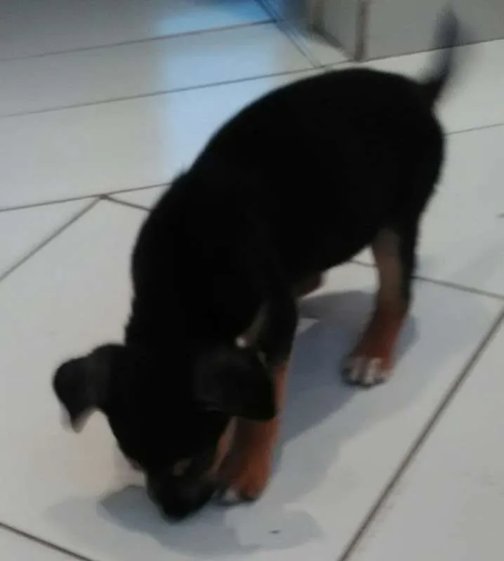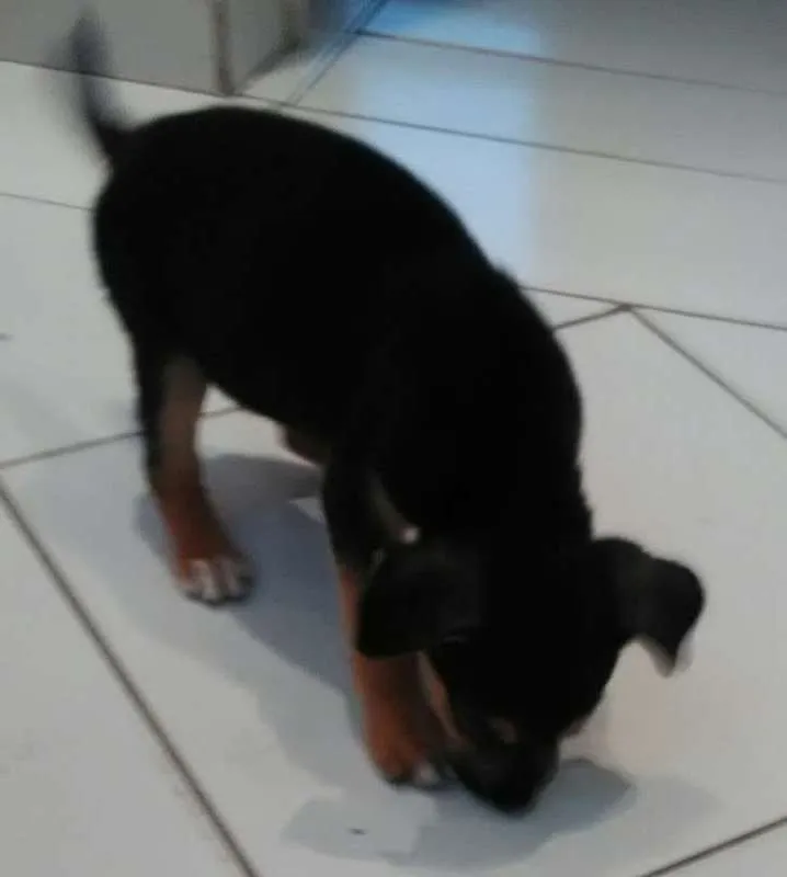 Estou doando um filhote chamado Fred, a pelagem dele é curta com cor predominante preto com caramelo, ele tem menos de dois meses, é bastante dócil, gosta de brincar e estou a procura de uma família que queira cuidar dele.