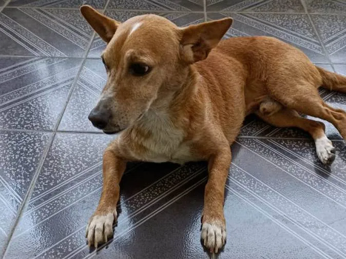 Ele é muito dócil, não sabemos se é vacinado, pessoas que estavam no local disseram que ele foi abandonado.