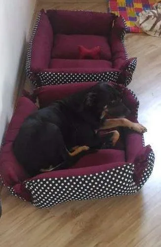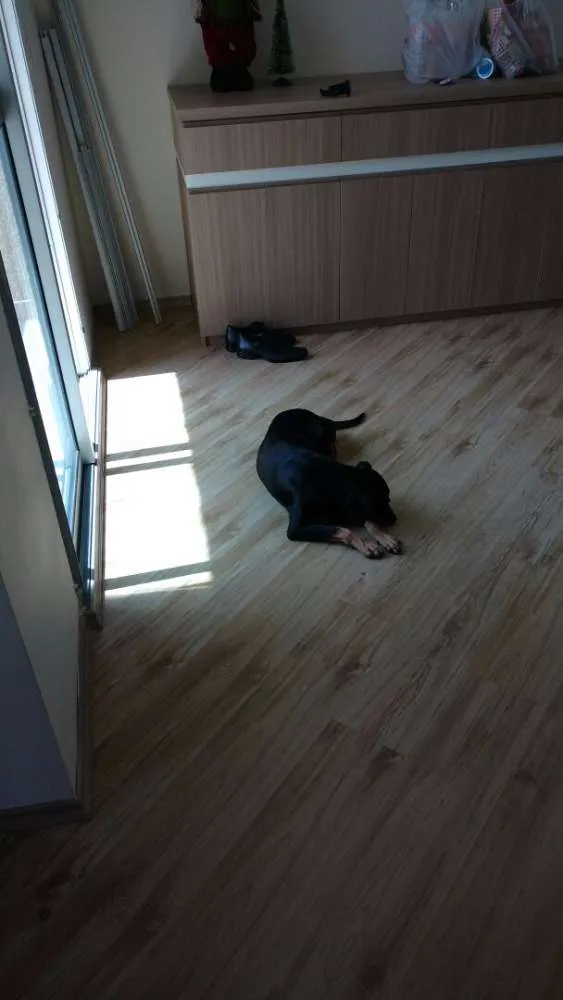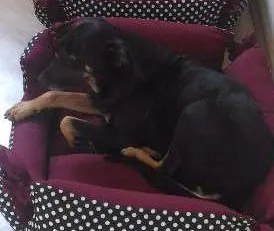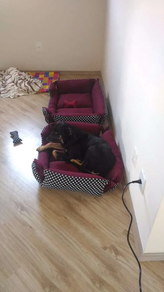 Quando resgatamos, estava muito assustada e com medo de tudo e todos. Agora está dócil, é brincalhona, pede colo e carinho.
