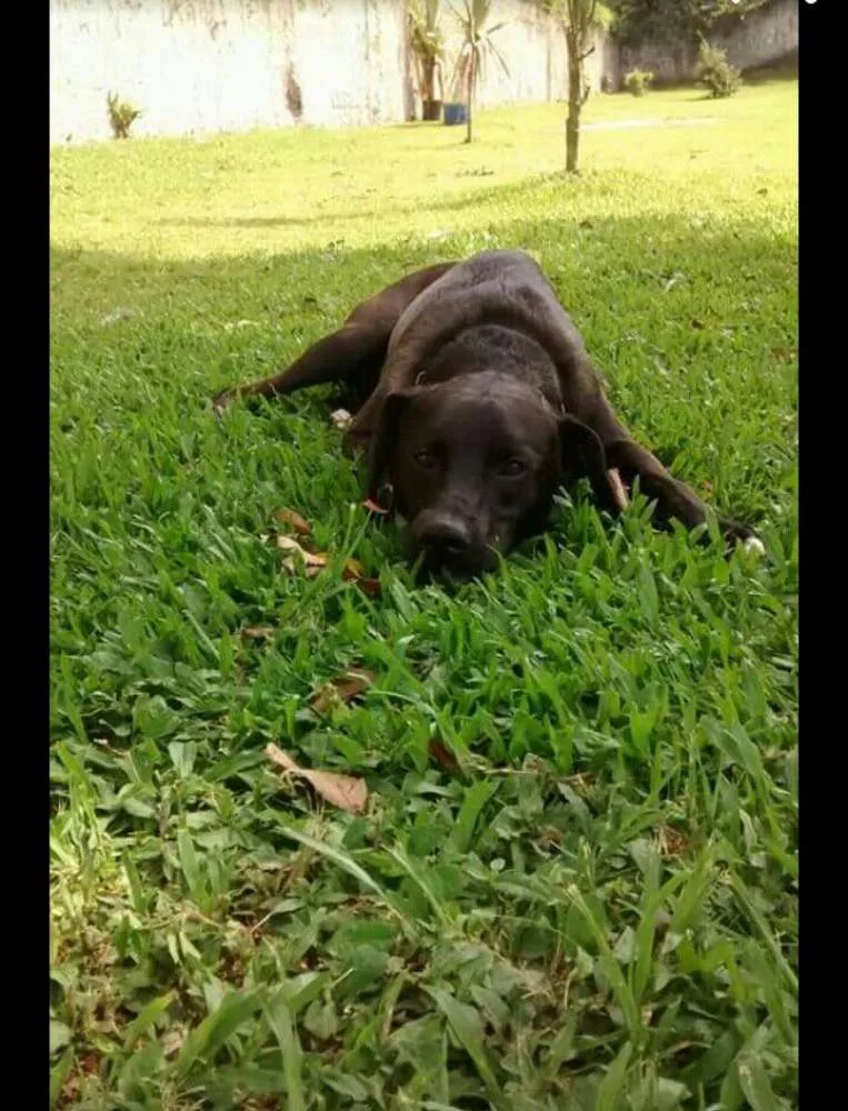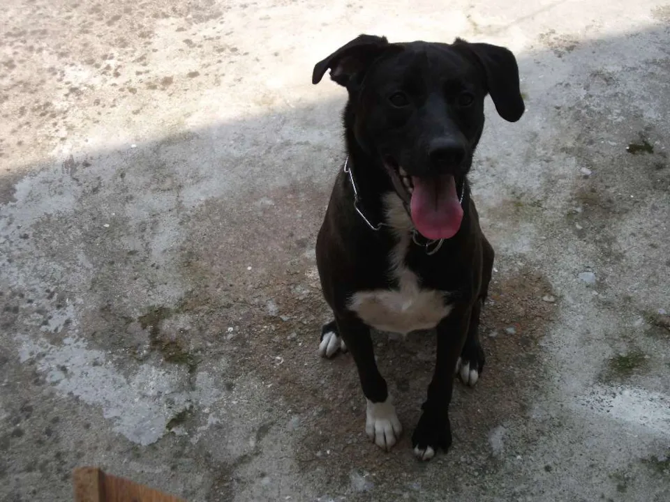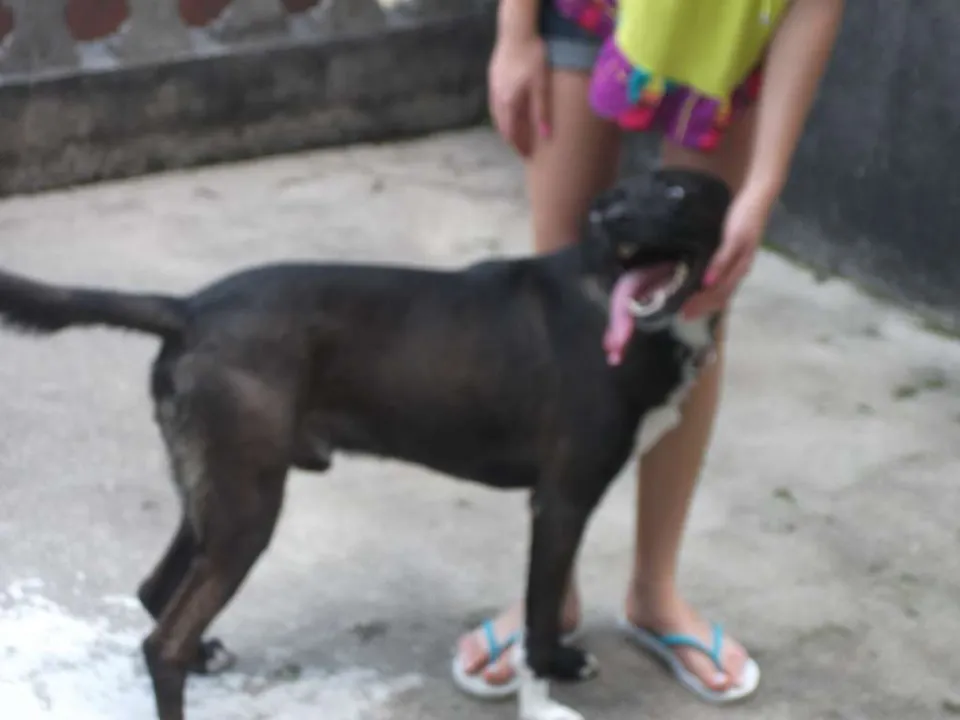 preto com uma pata branca , peito branco , perfeito para exerce a função de cao de guarda , motivo da doação falta de espaço , por ser um cão de porte grande .