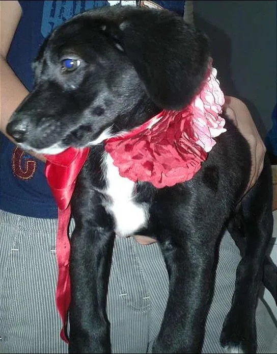 URGENTE!! FÊMEA preta , ultima da ninhada, dócil, convive bem com crianças e outros cães, estava na rua, já está vermifugada, não tem pulga e carrapato. A mãe é pequena, mas o pai é médio/baixo, 30 cm com as 4 patas no chão!