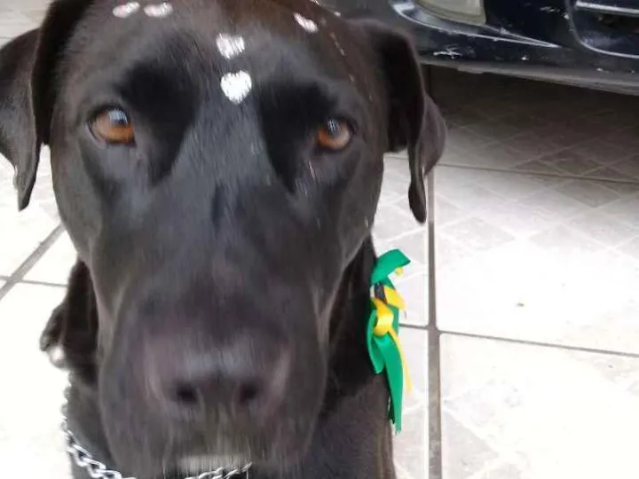 Essa cachorra apareceu na porta de casa.