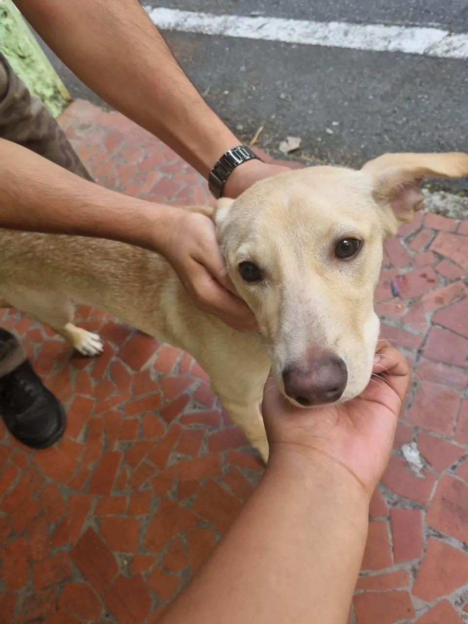 Cachorro abandonado no Lar da Mamãe Clory, chegou muito assustado porém um cachorro dócil, amoroso e bonzinho.