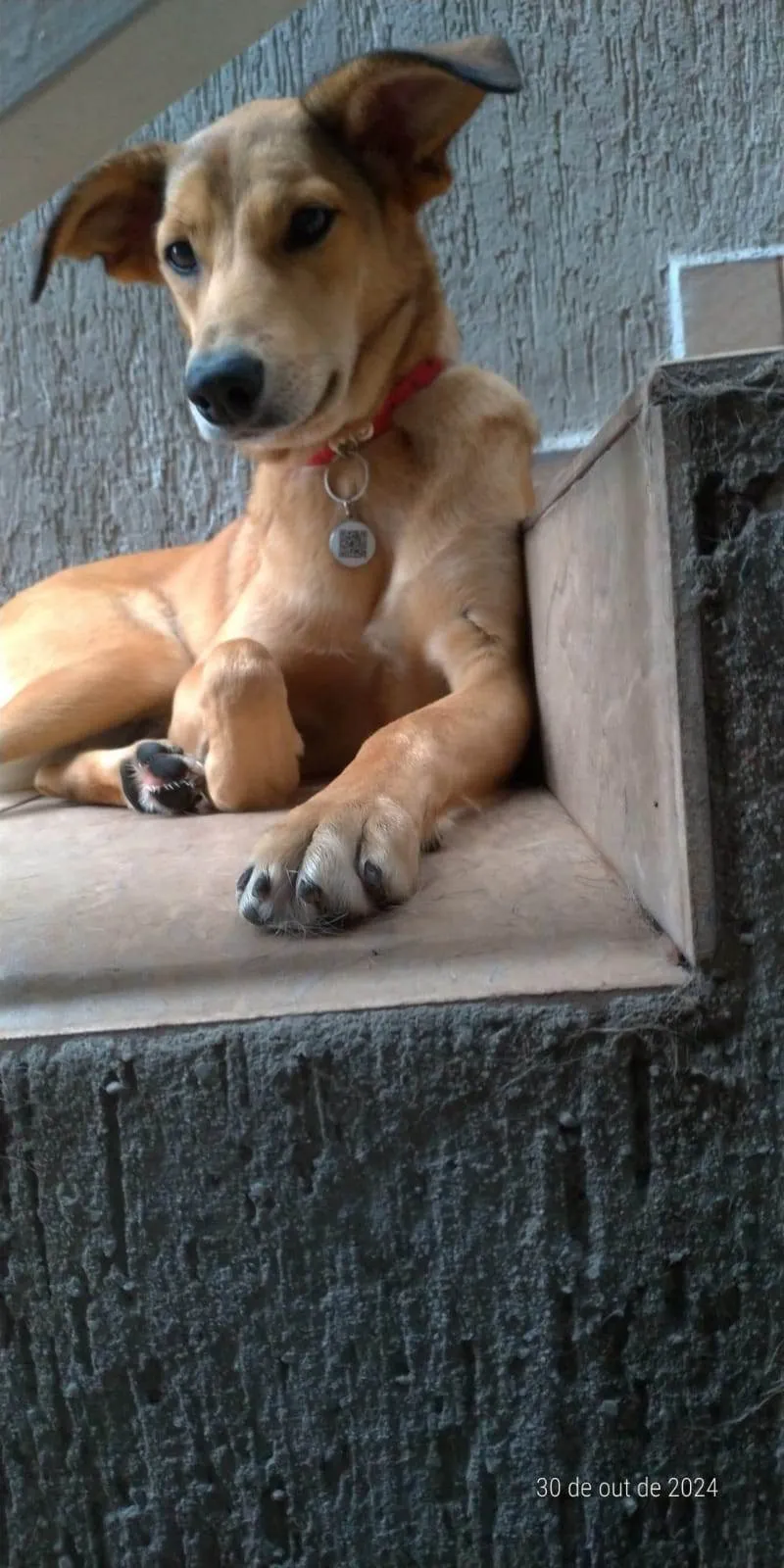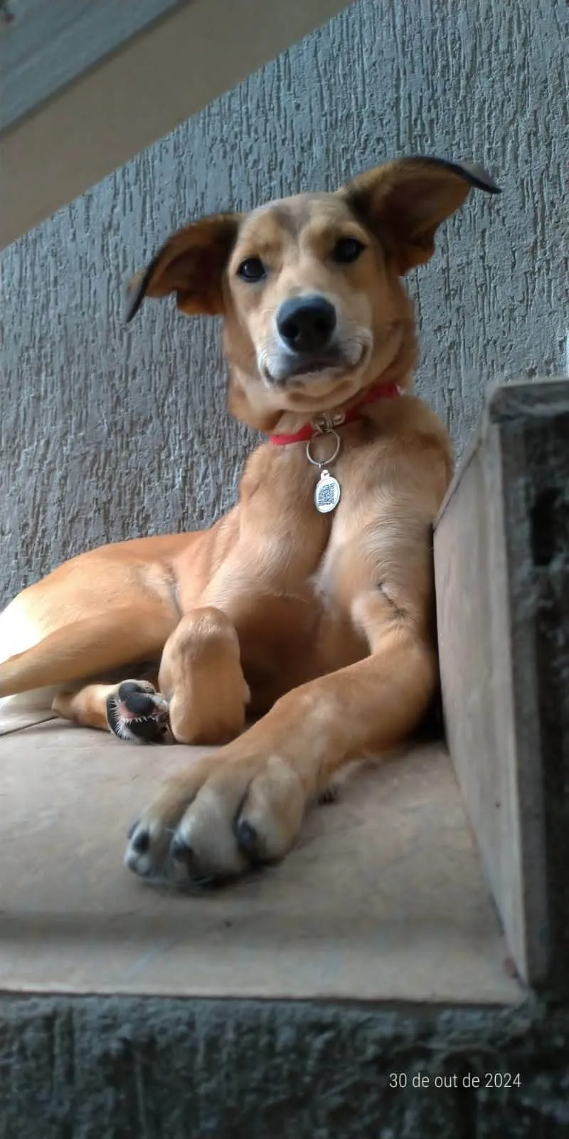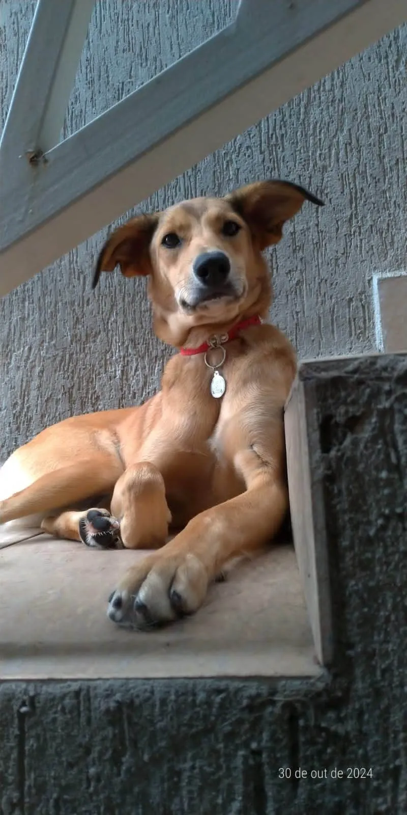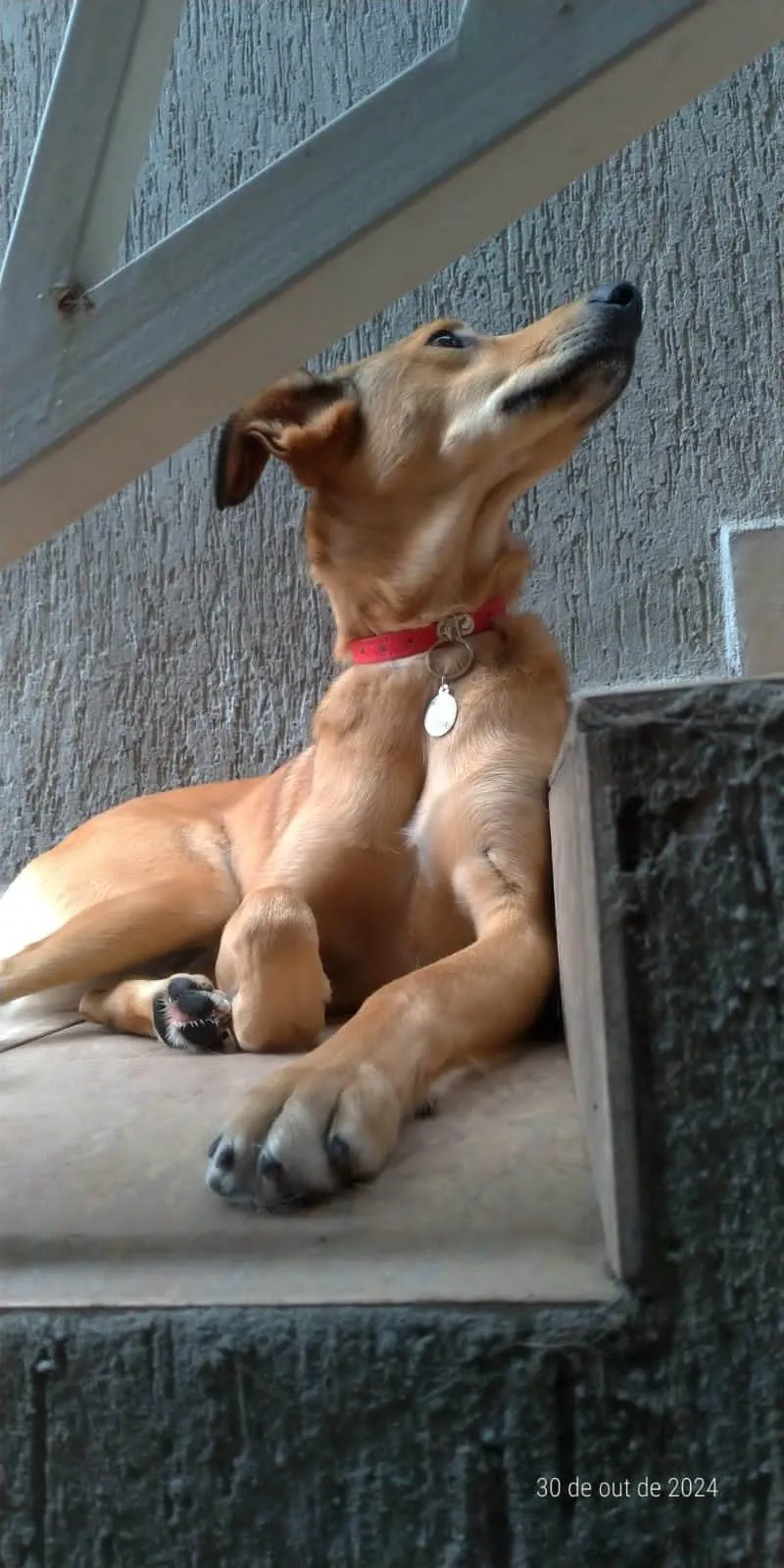 Essa é a Sandy, uma adorável cadelinha SRD de 2 anos, com pelagem caramelada e porte grande. Abandonada na rodoviária Fernão Dias, ela passou por momentos difíceis, quase perdendo a vida atropelada. Desde então, encontrou um lar temporário que cuida dela, mas Sandy deseja um lar definitivo!