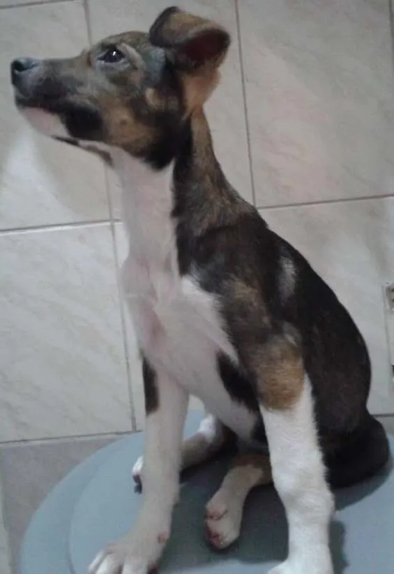 pelo malhado entre branco, preto e marrom, muito ativa, carinhosa e brincalhona. foi encontrada no dia 16 de março deste ano perambulando e quase foi atropelada. não temos espaço para ela, por isso a doação.