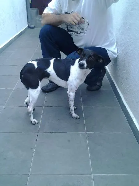 Femea de porte pequeno, SRD, aproximadamente 1 ano, encontrada no Bairro Taboão em São Bernardo do Campo. Dócil e amigável. Pelagem curta branca e preta.