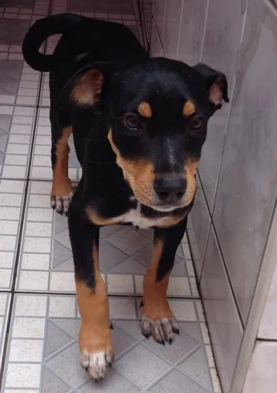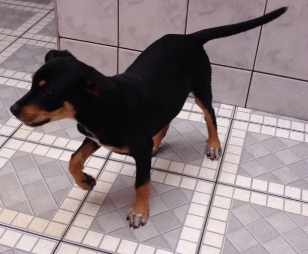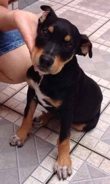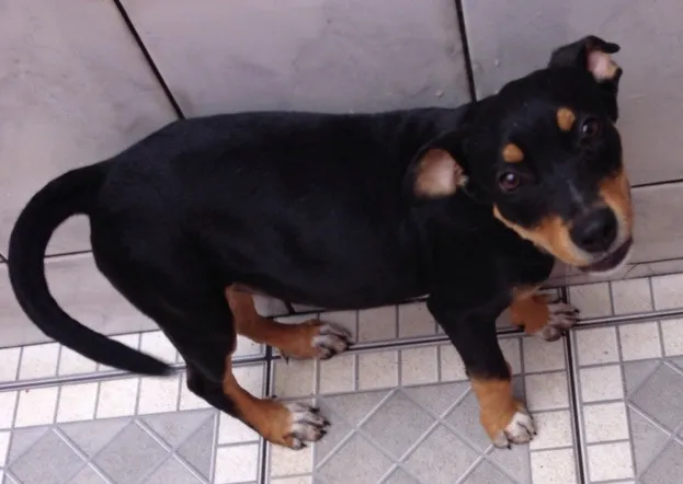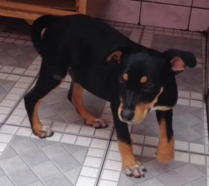 Filhote de vira-lata, vermifugado. Encontrei perdido quando tinha 2 meses. Procuro um dono urgente, pois não posso ficar com ele em casa. Ideal para quem tem espaço, pois será de porte grande. Contato no telefone (11) 96446-9170, falar com Marolí. Local: São Bernardo do Campo - SP
