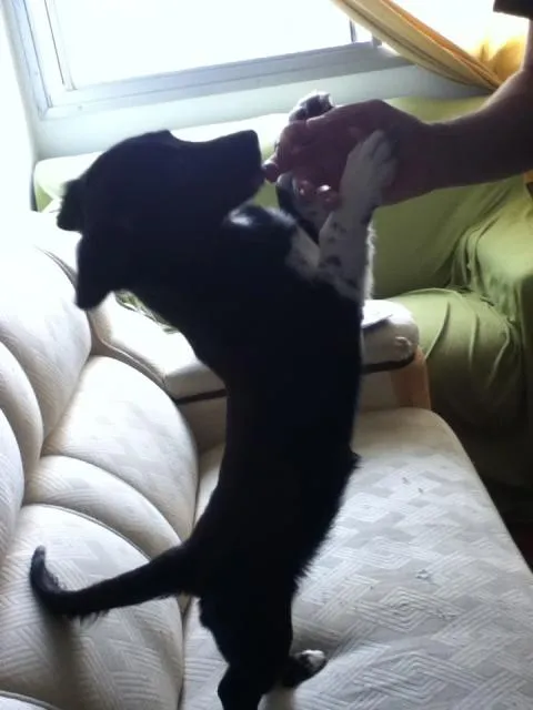 Vitória é uma cachorra muito alegre e cheia de energia. Ela adora brinca, educada e adora outros animais.
