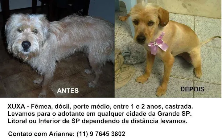 A Xuxa adora passear e receber um carinho na barriguinha !!! É companheira e nunca cobra nada do seu dono ... seu sonho é ter um lar e em troca ela promete muito carinho e fidelidade. Seu amor não tem fim e nem conhece limites, ela nunca vai deixar de te amar mesmo quando você não estiver dando tanta atenção quanto ela merece. Seu carinho é assim: INCONDICIONAL !
