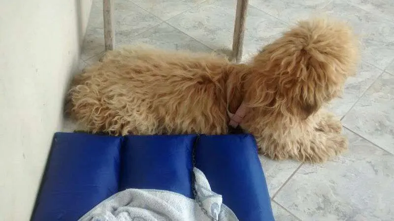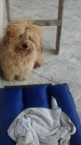 Cãozinho SRD, parece mistura de lhasa e poodle, encontrado dia 11/07/2014, na rua da UBS Vila Euclides, próximo ao colégio Barão de Mauá. Parecia assustado, andando sem rumo no meio da rua, na chuva. Tem o rabo cortado, patas e franja tosadas. Aparentemente está saudável e sem ferimentos.