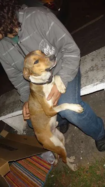 Foi encontrado na praça Antonio Morales na vila vivaldi Rudge Ramos há dois dias. Há rumores que o dono deixou ele lá e foi embora de ônibus. O cachorro fica no ponto e se desespera ao ver ônibus chegando...o que reforça a crença que ele foi abandonado/perdido.. Dócil, carinhoso, castrado.. está limpinho... Por favor, região do ABC...