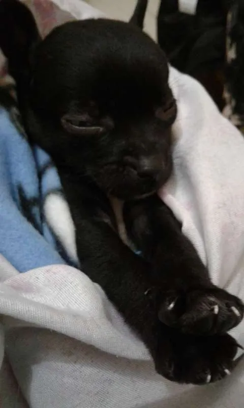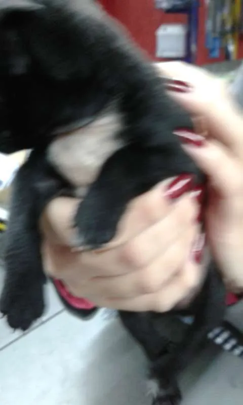 Cachorrinha preta mancha branca peito(gravatinha) sem raça definida, levada por um andarilho na av senador vergueiro em Sao Bernardo do Campo foi perseguido e entrou dentro favela tamarutaca em sto andre