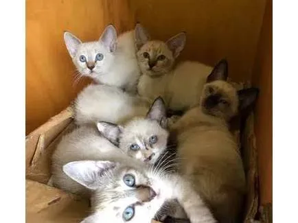 9 gatinhos para doação, restam 2 branquinhos, 2 siameses e 2 mesclados. Todos machos, apenas 1 branquinha fêmea. Estão com 4 e 3 meses, já fazem as necessidades na areia e comem ração.