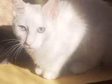 Essa bebê com heterocromia é fêmea e com 3/4 meses, bem medrosa, achada no mato e por isso PRECISA TER EXPERIÊNCIA COM GATOS E MUITA PACIÊNCIA.