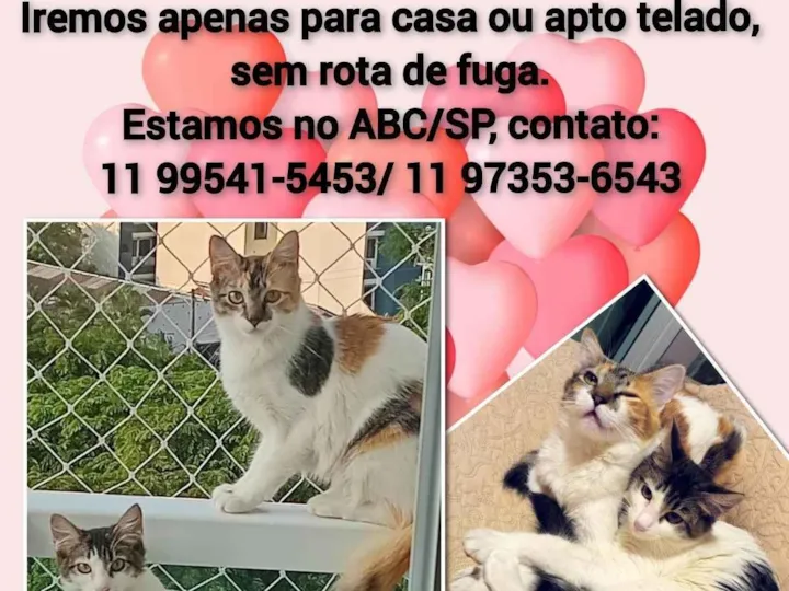 Clara de 5 meses e Docinho de 9 meses, castrada, são 2 gatinhas filhotes lindas que precisam e esperam por um lar seguro, sem rota de fuga e com muito amor e cuidados. Serão doadas apenas para casa ou apto telado, sem rota de fuga.