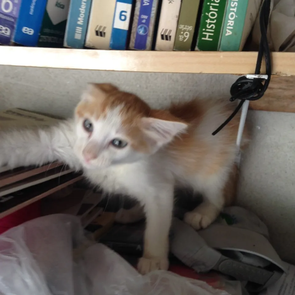 Foi deixado na porta de casa dentro de uma caixa adoro animais porém minha namora tem alergia e não podemos criar animais de estimação em casa estamos a procura de alguém que queira adotar um lindo gatinho