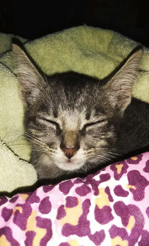Tenho aproximadamente 1 mês (sim, uma bebê), mas por intermédios não muito agradáveis do destino, passei muita fome e acabei tendo que comer de tudo na rua para sobreviver, então hoje em dia eu já aceito e gosto muito de ração de filhotes, mas não irei reclamar caso queira me dar algo que substitua o leite materno, assim como os meus tios fazem!