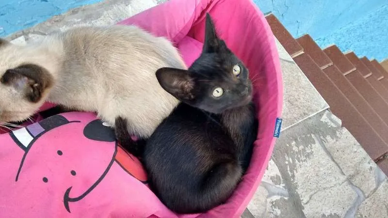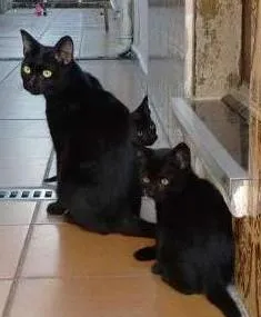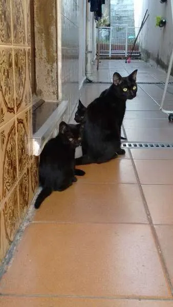 Estou doando três filhotes de gatinhos pretos. São 02 machos e 01 fêmea. Educadinhos, já usam a caixinha de areia e comem ração. Estão com 02 meses e meio.