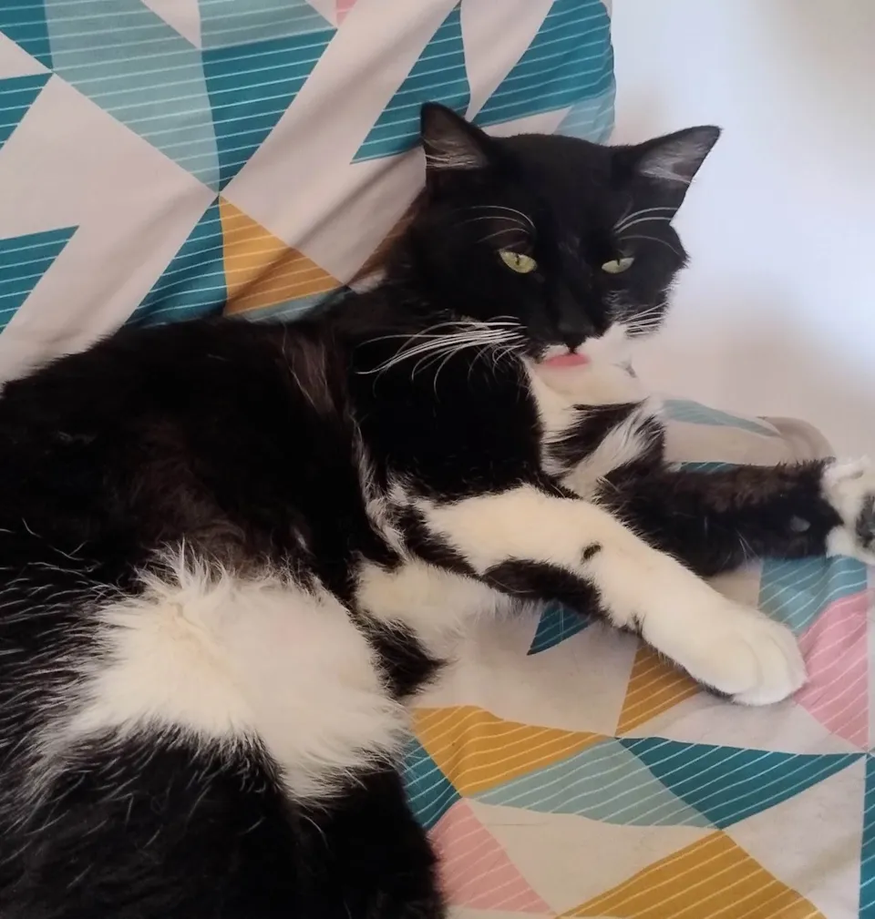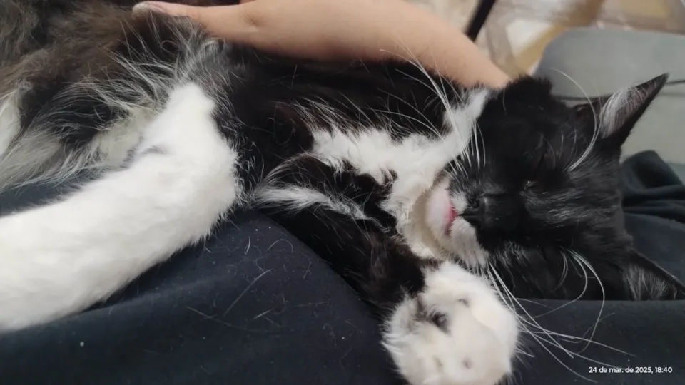Rogerio foi encontrado em um estacionamento e logo disse "oi" e aceitou colinho. É um belo frajolão, grande, de pelagem longa e sedosa, olhos verdes e muito carisma. Se dá bem com outros gatos, cães e crianças. Está a procura de uma família, somos lar temporário dele.