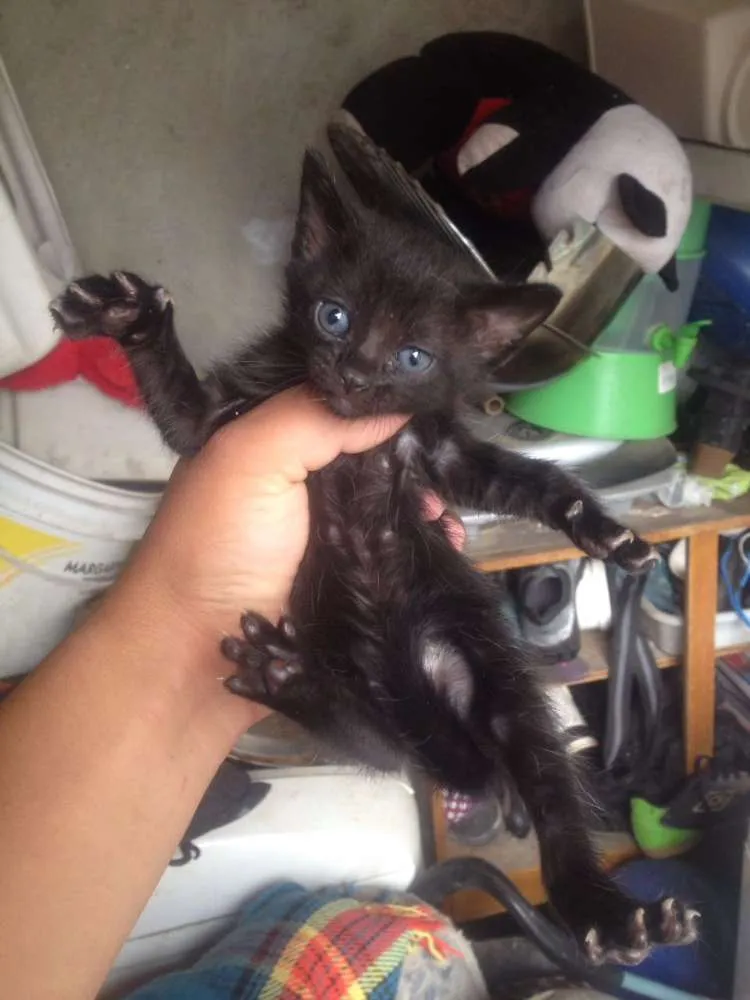 Encontrei esses 3 gatinhos as pretinhas são fêmeas e o preto e branco é macho estão comendo ração ja. Não posso ficar por muito tempo meus cachorros não gostam de gatos