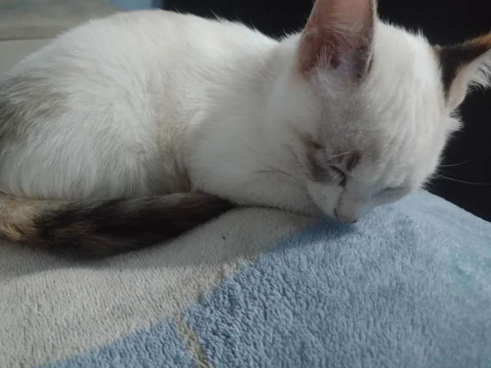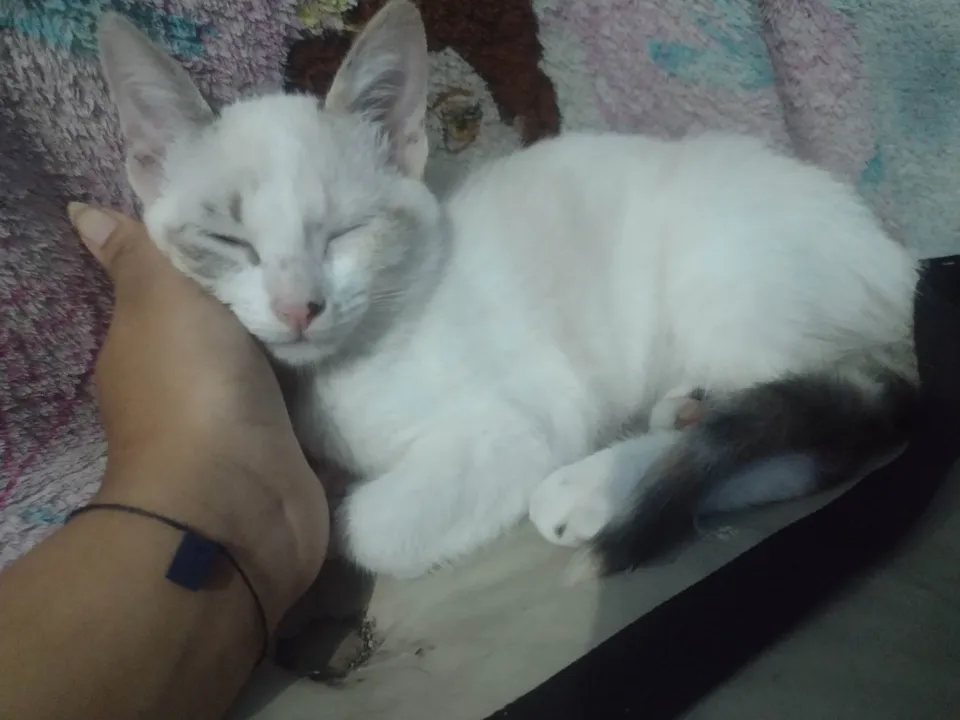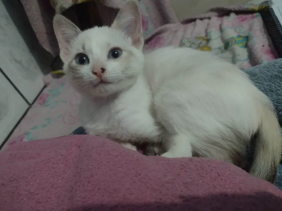 Conheça a Sophie, uma adorável gatinha SRD-ViraLata com uma pelagem charmosa branco com o rabo e as orelhas com tons de marrom e rosa. Com idade entre 7 a 11 meses, ela possui um porte médio que esconde seu apetite crescente após a gestação. Apesar disso, Sophie continua magra e cheia de energia, lembrando até um filhote! Essa fofura é vermifugada e possui um temperamento encantador, sendo dócil, brincalhona e sociável. No entanto, ela não é carente, mantendo um equilíbrio entre independência e interação.