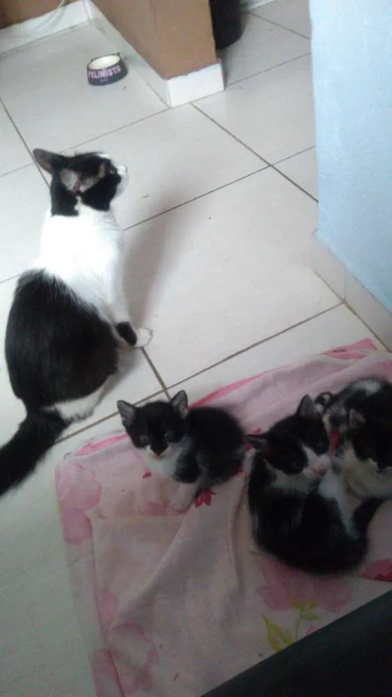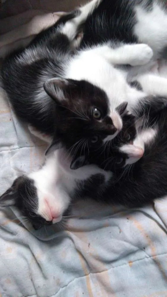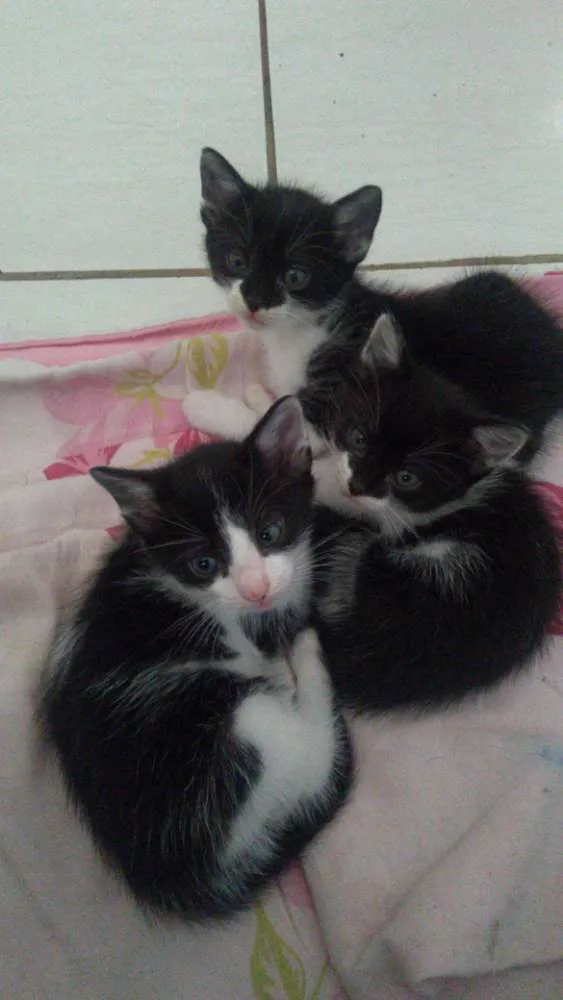 Adotei a mãe dos gatinhos, resgatada da rua já prenha. A mimi deu cria a 6 gatinhos e só faltam 3 para doar. Com a mamãe deles ja tenho 3 gatos, não consigo ficar com eles. São muito brincalhões e carinhosos. Já aprenderam a usar a caixinha de areia e comerem ração. Os gatinhos têm 2 meses de idade.