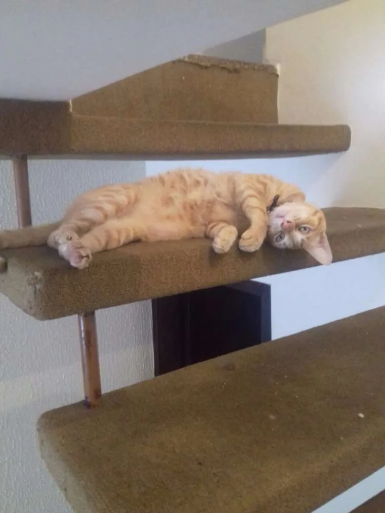 Macho, tigrado amarelo, 1 ano e meio. Perdeu-se em 13/04/2016 na Rua Amaro José Gonçalves - Bairro Santa Terezinha - São Bernardo do Campo/SP Estava com uma coleira preta com sininho roxo.