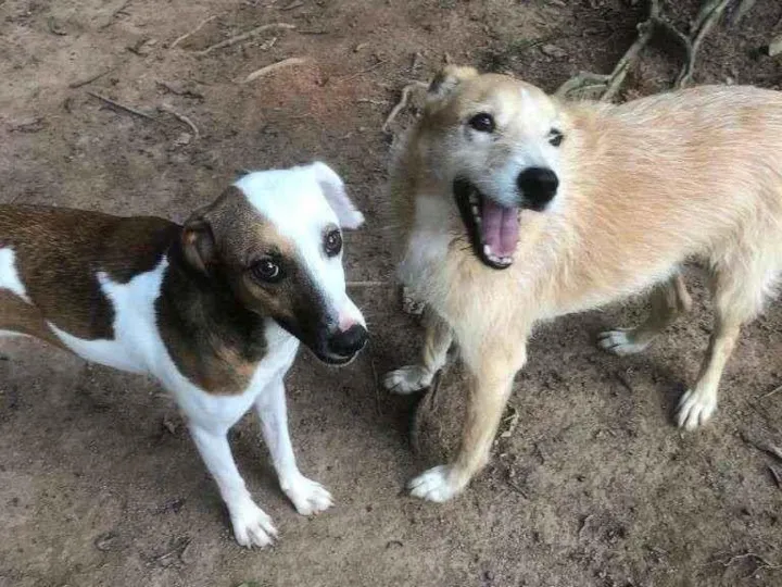 Scooby (da direita) - Scooby é um meninão muito bonzinho e dengoso que está para adoção. Ele tem 3 anos, porte médio, já está castrado e vacinado. Pode ser entregue para o adotante, dependendo do local.
