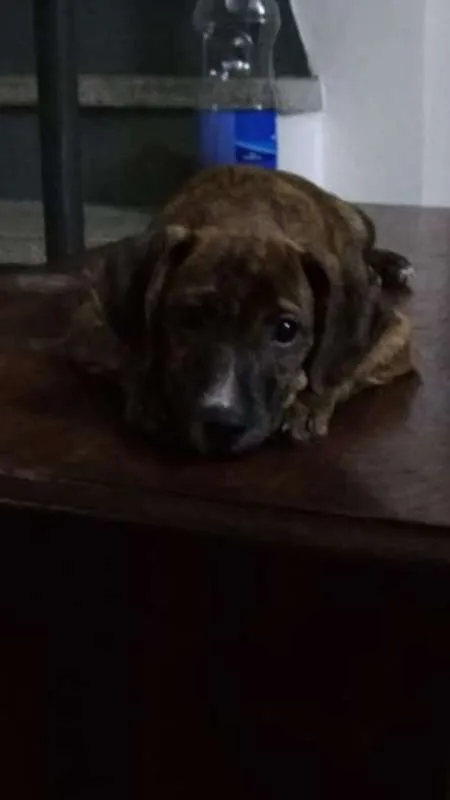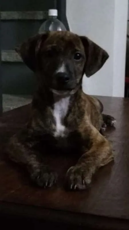 Melissa é uma filhote de 4 meses que procura um lar. Deve ficar porte pequeno. Está no Jabaquara, mas pode ser entregue para o adotante, dependendo do local.