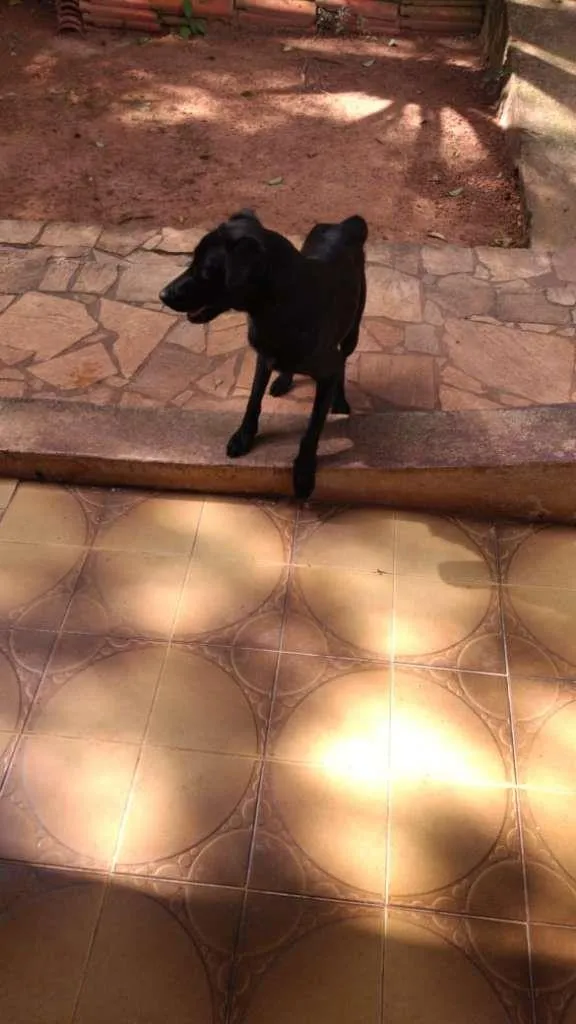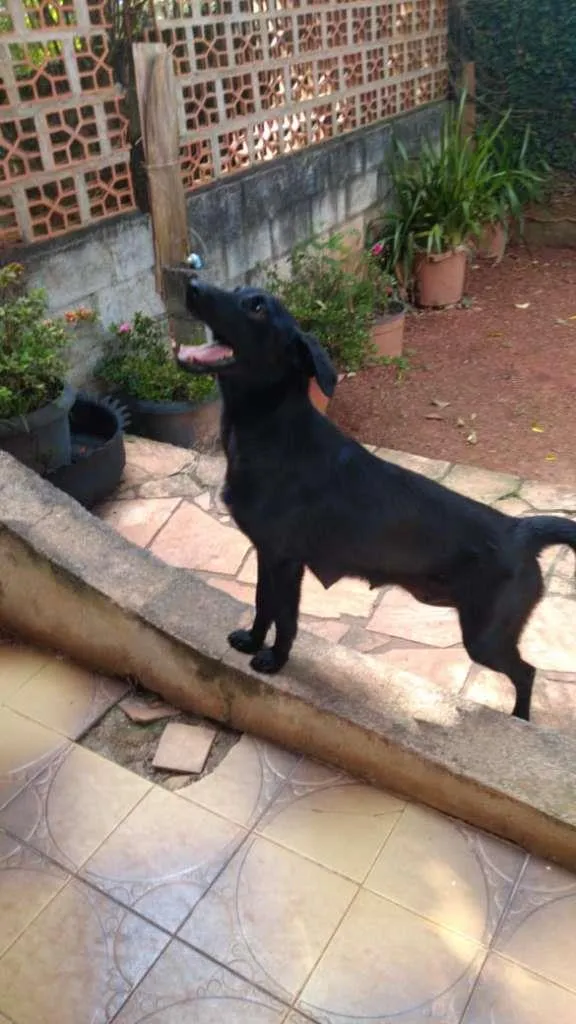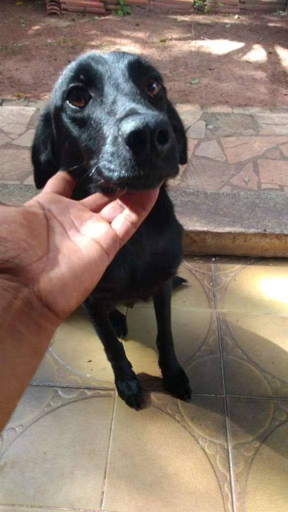Preta é uma cachorrinha muito dócil que vivia num matagal. Lá ela teve seus bebês, todos eles foram adotados, agora é a mãezinha que precisa de um lar.