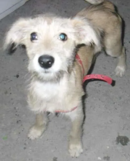 Mais um abandonado. A protetora Hildete colocou o pequeno num galpão úmido e escuro. E tem que ficar amarrado pra não fugir pra rua e correr o risco de ser atropelado.