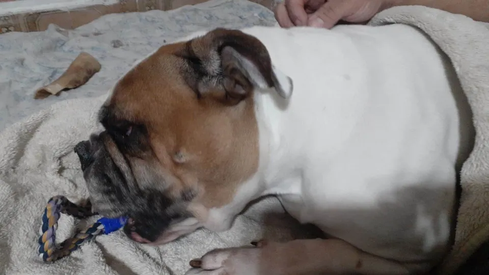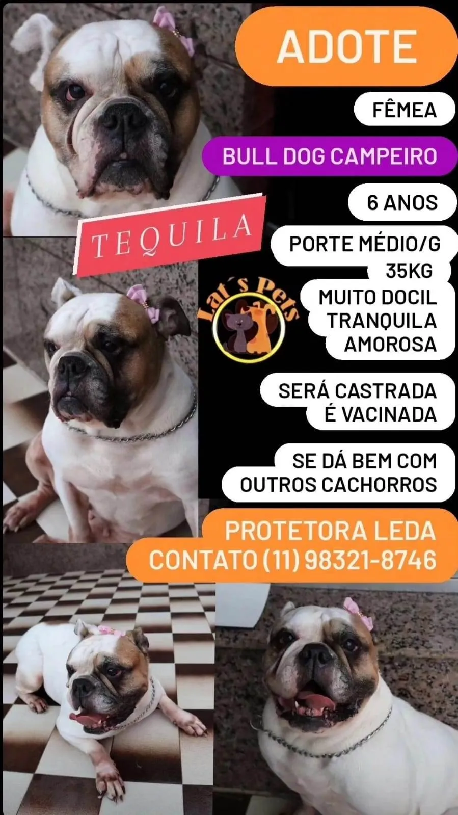 Buldog campeira Tequila. 5 anos castrada, vermifugada, já fez a cirurgia do palato mole só precisa vacinar.