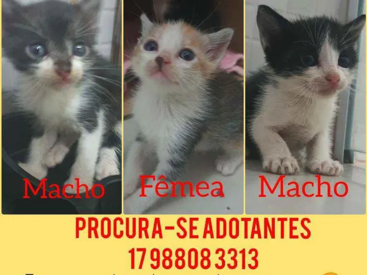 Achei esses filhotes de gato na rua dentro de uma sacola. Não posso ficar, tenho cães grandes. Preciso achar lares para eles. Me chama no Whatsapp 17 98808 3313 em se for de Rio Preto ou cidades próximas , levo ate você.