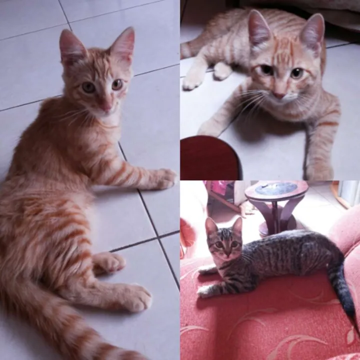 Encontrei três gatinhos e quero encontrar um lar definitivo a eles. São dois machos rajados amarelos, um dos machos é um pouco mais peludo que os outros, e uma fêmea rajadinha cinza.