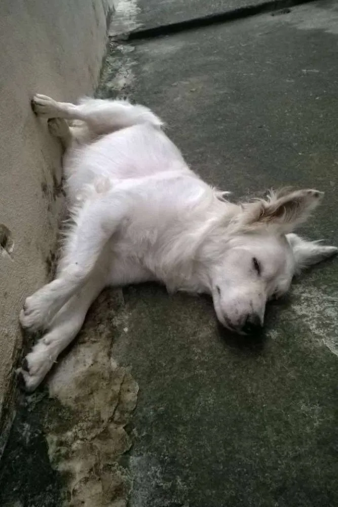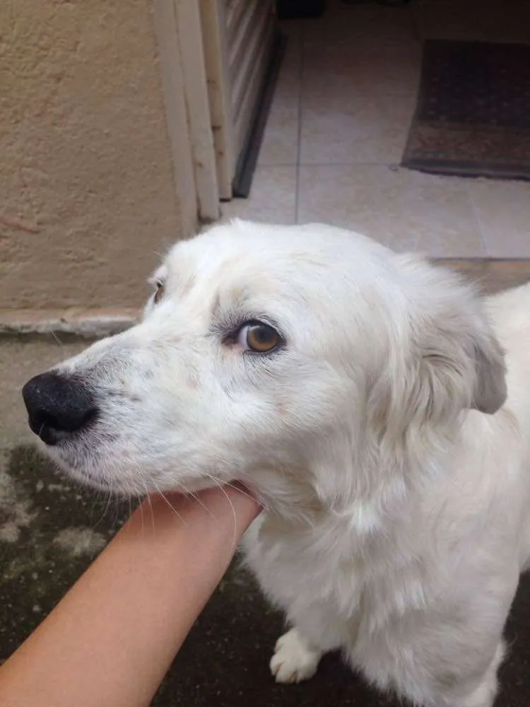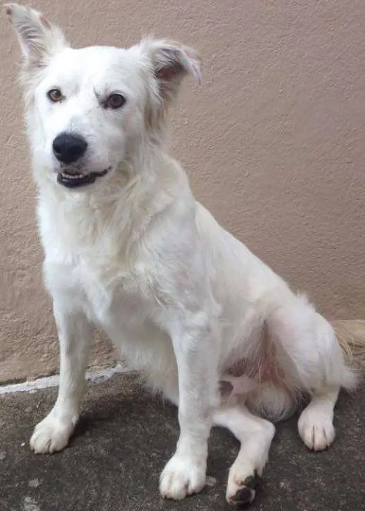 O Branquinho é um macho muito ativo, carinho, festeiro. Ele era de uma vizinha e ela se mudou e o deixou na rua, desde então tenho cuidado dele mas não tenho condições para ficar com ele.
