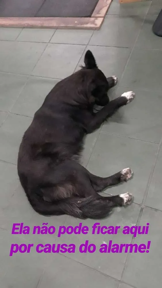 Ela apareceu em minha empresa ontem 17/07 à noite. Está na A+ CrossFit (Av. Engenheiro Francisco José Longo). É extremamente dócil, gosta muito de crianças, carinhosa, pêlos longos pretos e com uma manchinha branca no peito. Está bem cuidada, dentes limpos, reconhece ração e não está castrada. Estava com pulgas e a mediquei contra. Vai tomar um banho hoje às 14h.