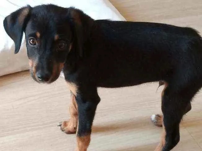 Peguei na segunda feira,levei no pet shop dei banho iria cuidar, mas a veterinária disse que ele parece ser vira lata com rottweiler e vai crescer muito e eu tenho duas crianças pequenas em casa e não tenho espaço pra um cachorro desse porte
