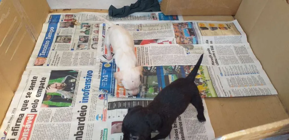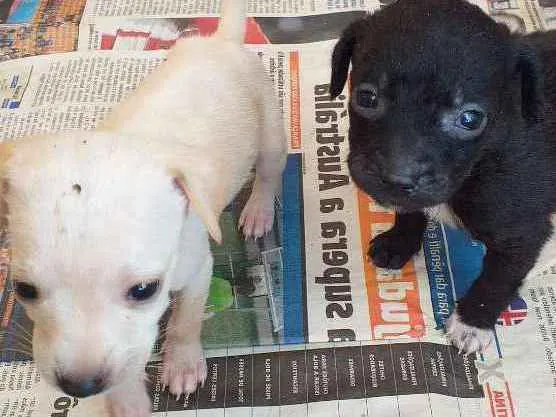 Cachorra com 2 filhotes de mais ou menos 1 mês, resgatamos das ruas para ajudar mas não temos condições de ficar com eles. Por isso estamos a procura de alguém que possa adota-los e cuidar com carinho.