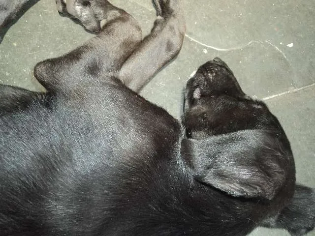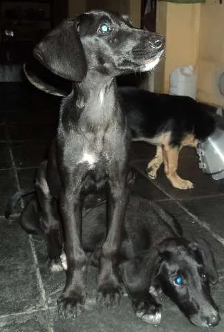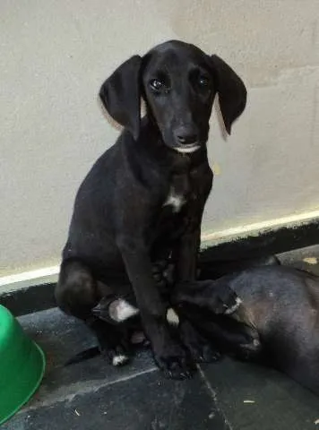 Encontrada com o irmão na rua, mas já vermifugada e com a primeira dose da V12, cor preta, porte grande, mansa, dócil,se dá com gatos, outros cachorros e adora crianças.